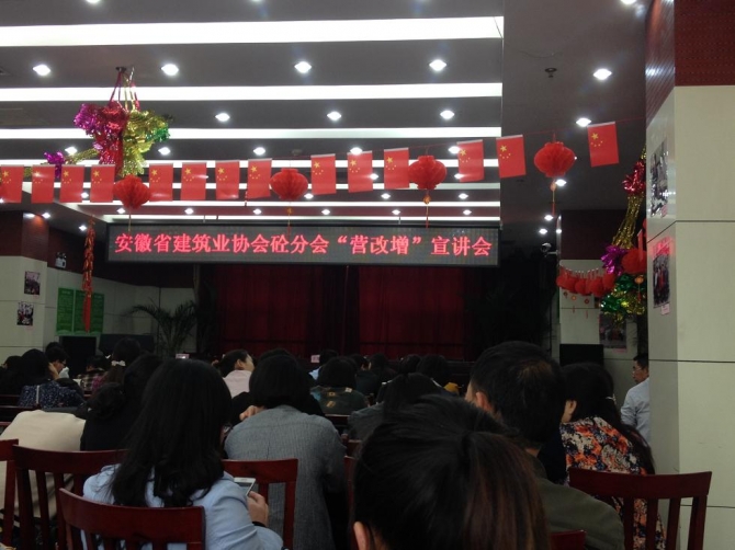 安徽省建筑業(yè)在2016年05月01日起營業(yè)稅改為增值稅,安徽省建筑業(yè)協(xié)會砼分會舉辦營改增宣講會。我公司安排財務及相關管理人員參加學習。