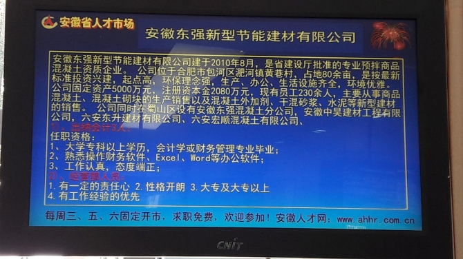 上圖為我公司在安徽省人才市場(chǎng)招聘簡(jiǎn)介