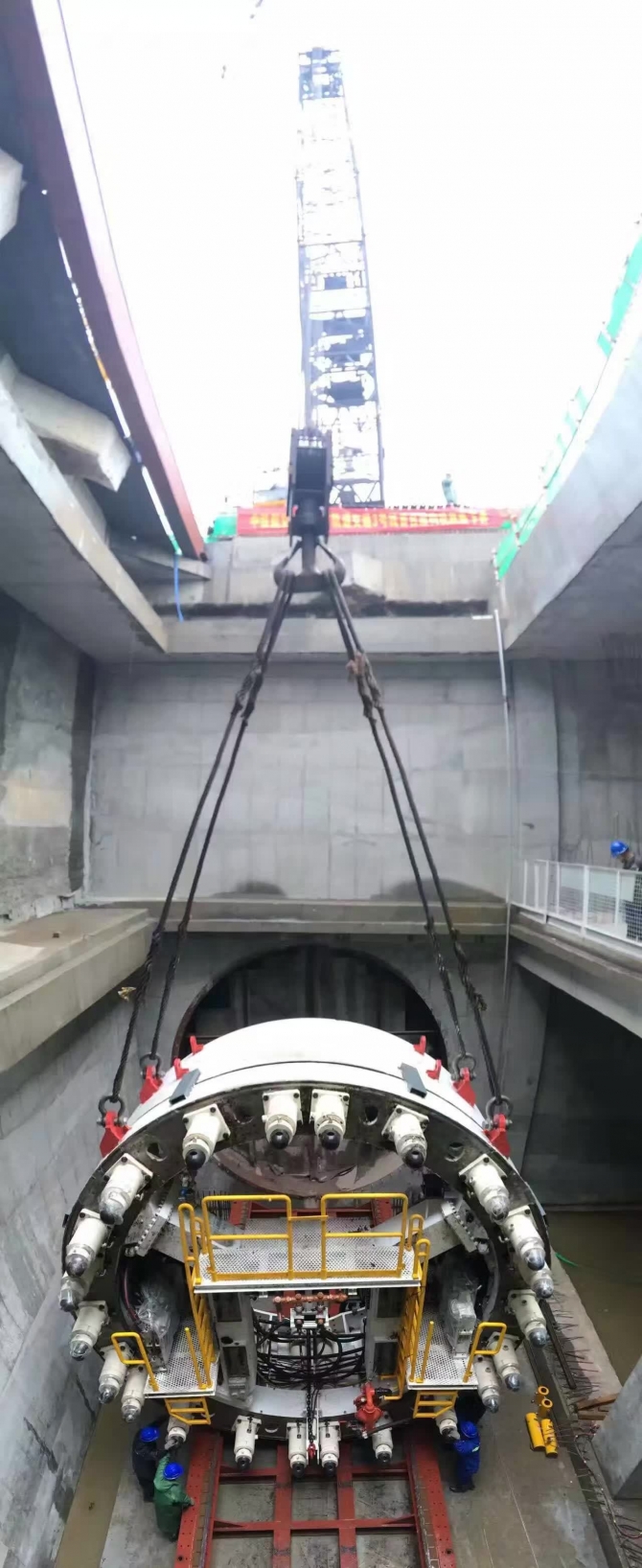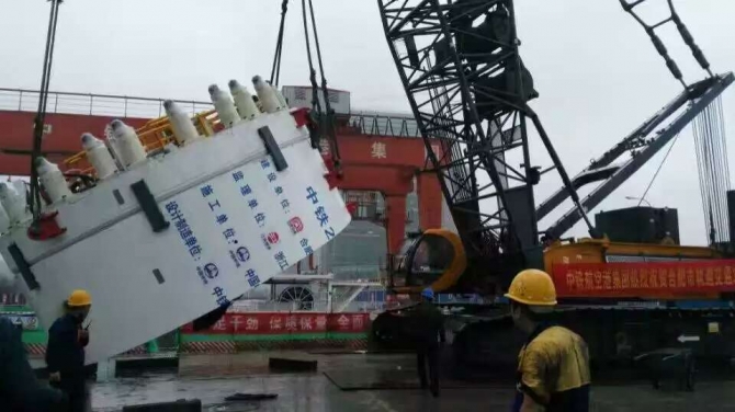 下圖為3-08標(biāo)盾構(gòu)機(jī)下井。