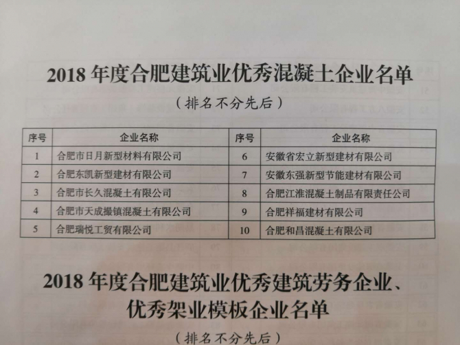 2019年6月20號合肥市建筑工程協(xié)會第六屆會員大會盛大召開,我公司參與會議,并被評為2018年度合肥建筑業(yè)優(yōu)秀混凝土企業(yè)。隨著公司近年來高速高質(zhì)量的發(fā)展,不斷的或者客戶及社會各界的好評和認(rèn)可,這離不開公司董事長、劉總經(jīng)理的高瞻遠(yuǎn)矚,以及管理團(tuán)隊(duì)的不懈努力。